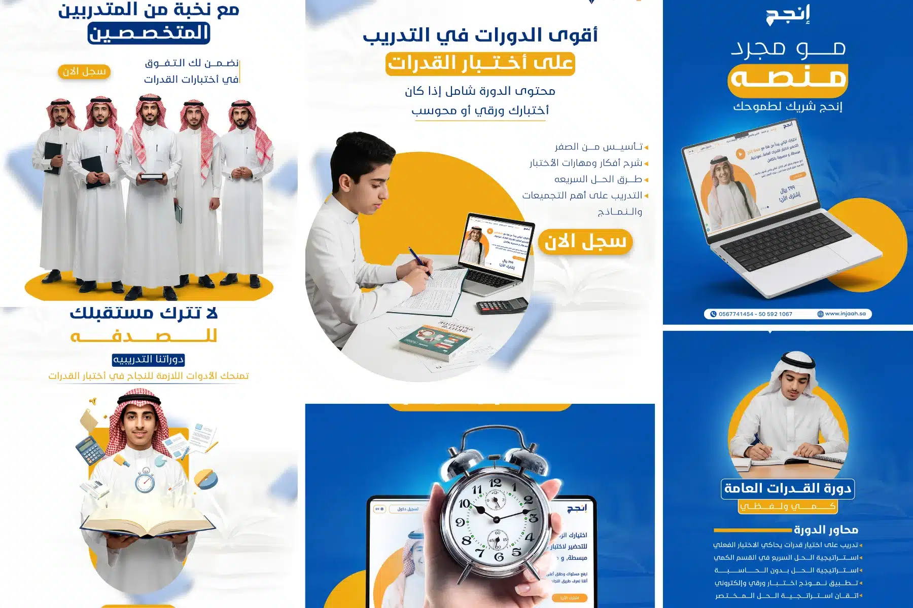 حملة تسويق رقمي لمنصة إنجاه موجهة لطلاب الثانوية الذين يستعدون لامتحان القدرات. حققت الحملة نموًا كبيرًا في التسجيلات من خلال محتوى بصري إبداعي ورسائل مستهدفة.