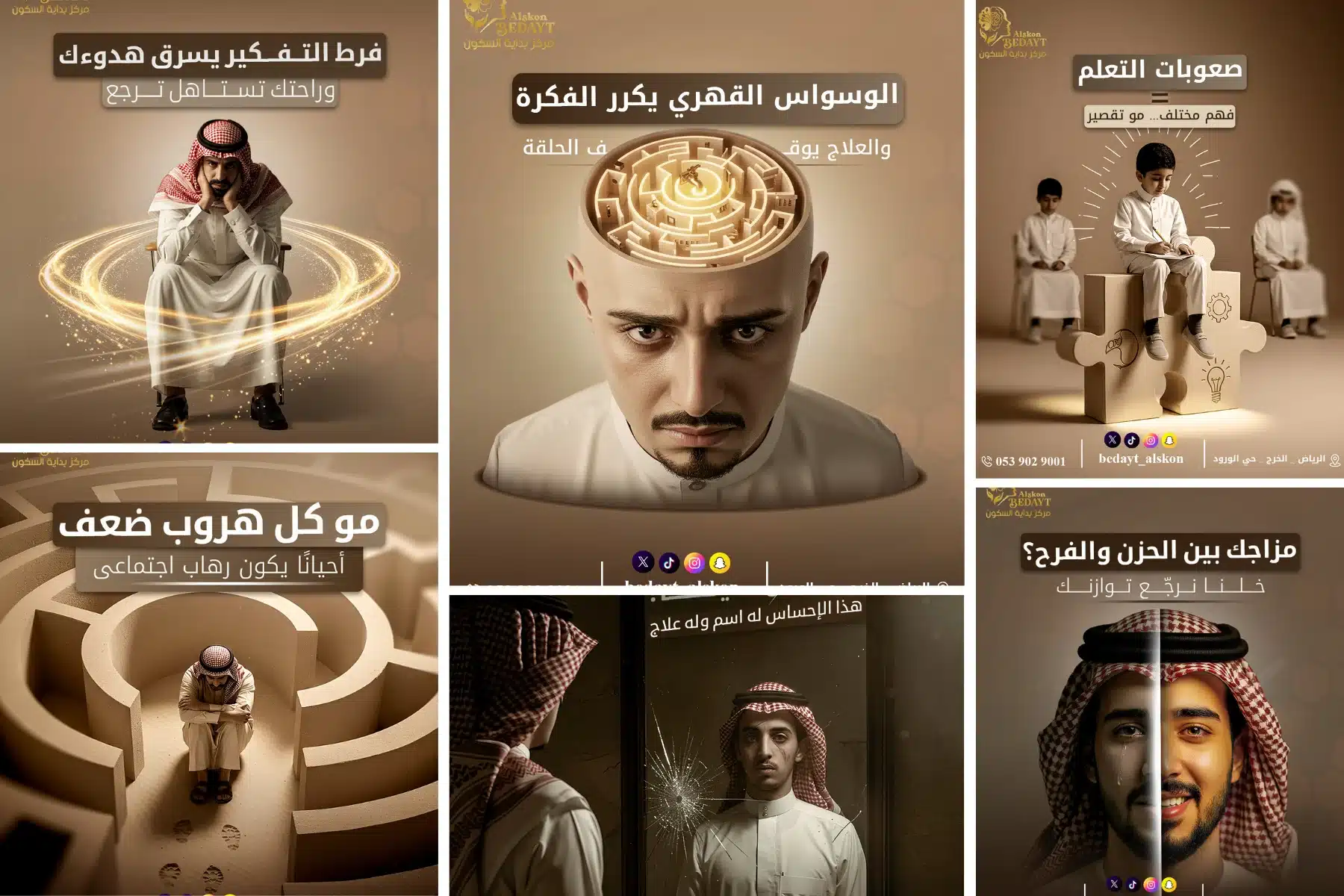 حملة تواصل لمركز "بداية السكون" تركز على التوعية بالصحة النفسية والاتزان العاطفي، حققت تفاعلاً قوياً بتقديم محتوى ملهم ورسائل واقعية وتصاميم داعمة تعزز جودة الحياة النفسية.